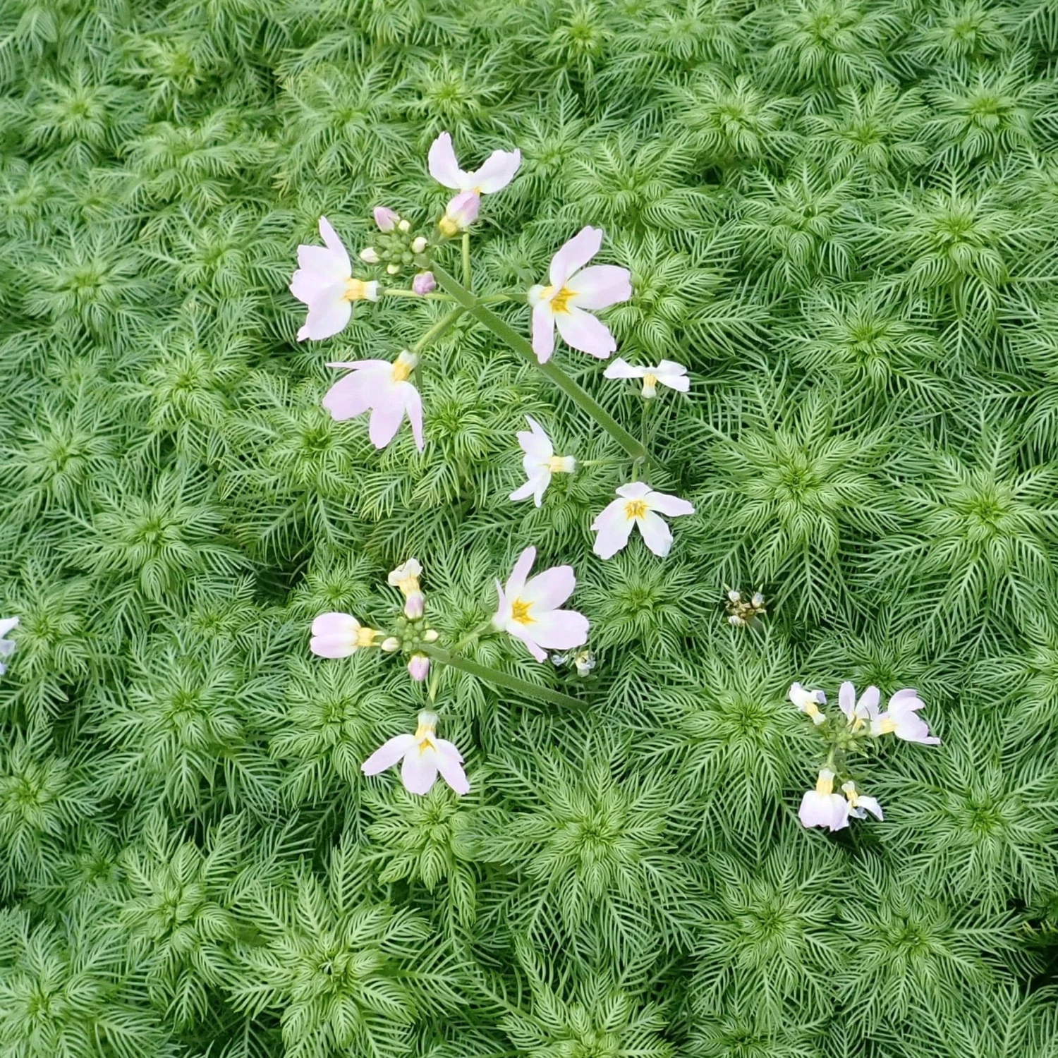 - Gorgeous ferny foliage dotted with lilac flowers