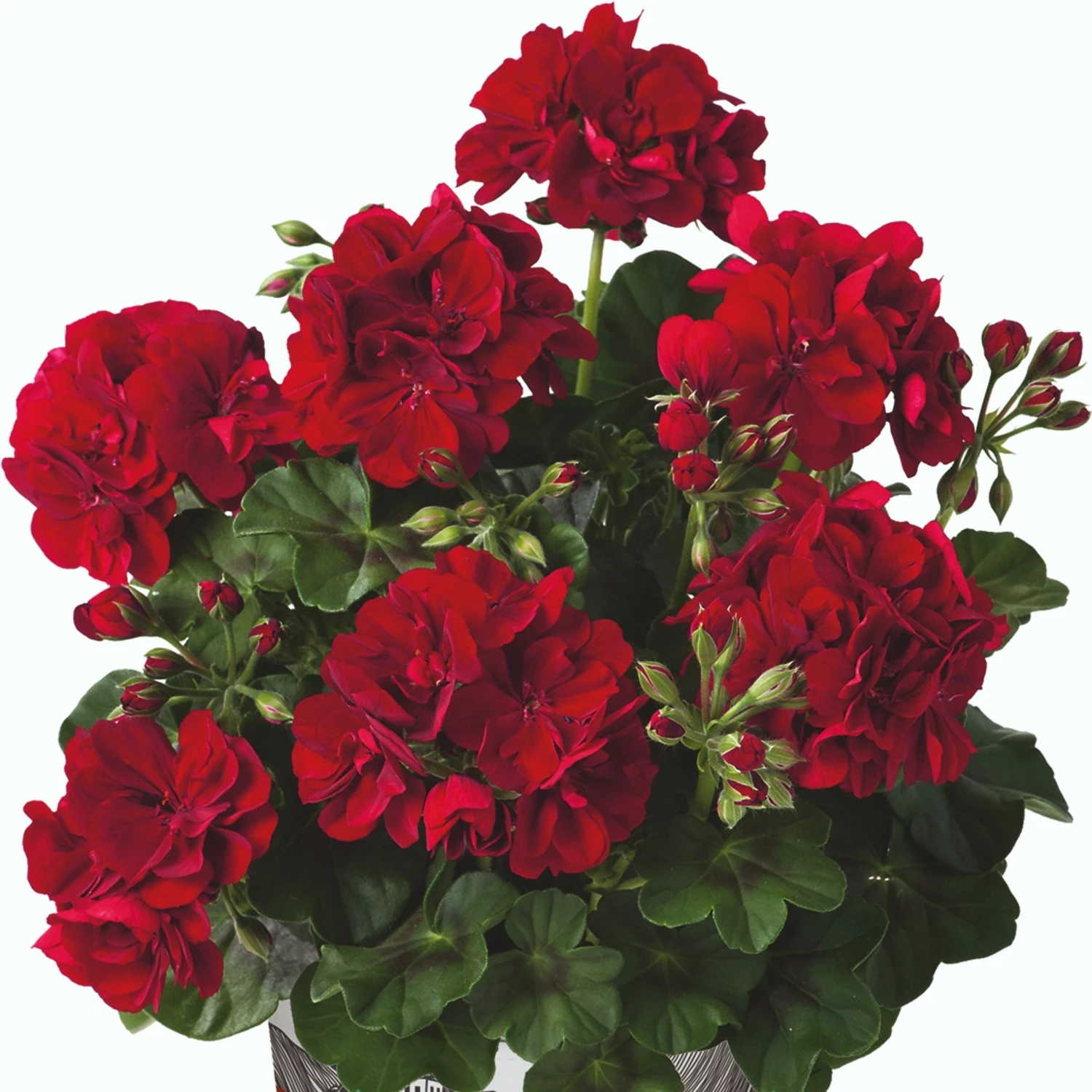 - A sophisticated, garnet red geranium with perfectly contrasting mid-green foliage