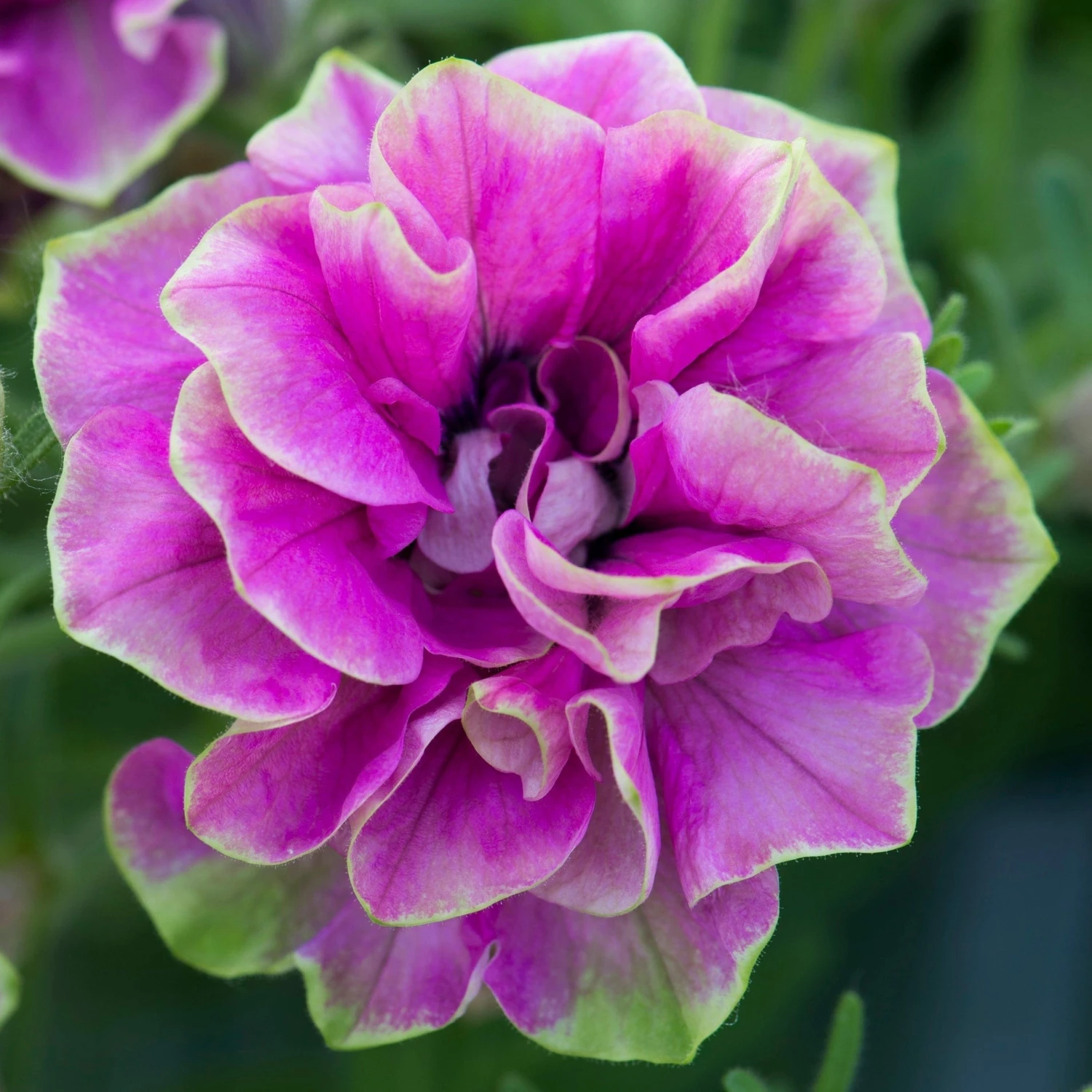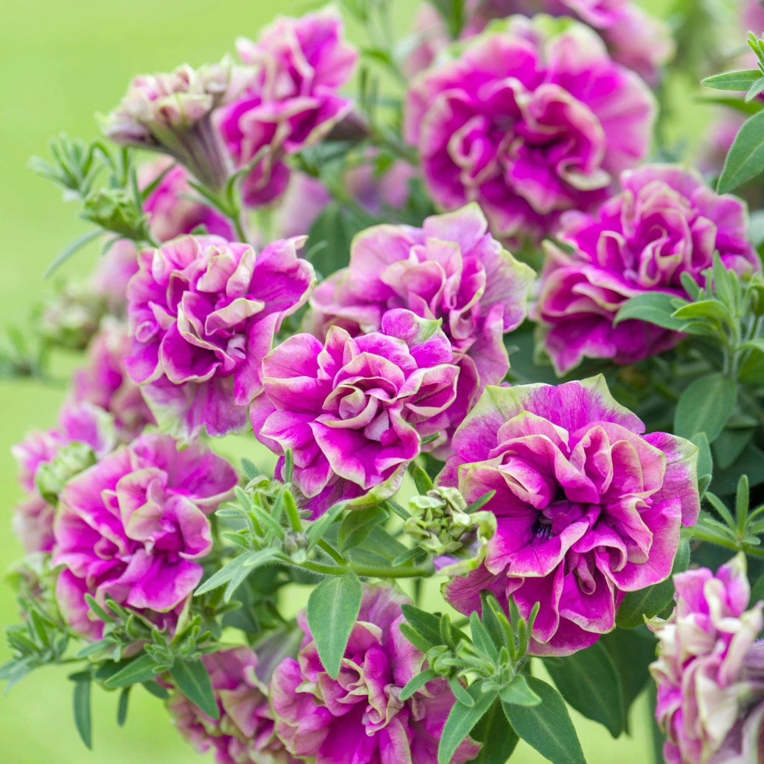 - Double, early flowering petunias in an irresistible magenta with crinkled white edges